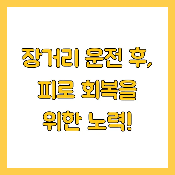 가장 중요한 건 충분한 휴식 이에요! 운전 후에는 몸과 마음이 모두 지쳐있을 테니, 푹 쉬는 게 최고랍니다. 좋아하는 음악을 듣거나, 책을 읽거나, 영화를 보면서 편안하게 시간을 보내세요! 잠들기 전에 따뜻한 우유 한 잔 마시면 숙면에 도움이 될 거예요. 베개 높이를 조절하거나, 아로마 오일을 사용하는 것도 좋은 방법이랍니다. 꿀잠 자고 일어나면, 다음 날 훨씬 개운할 거예요!